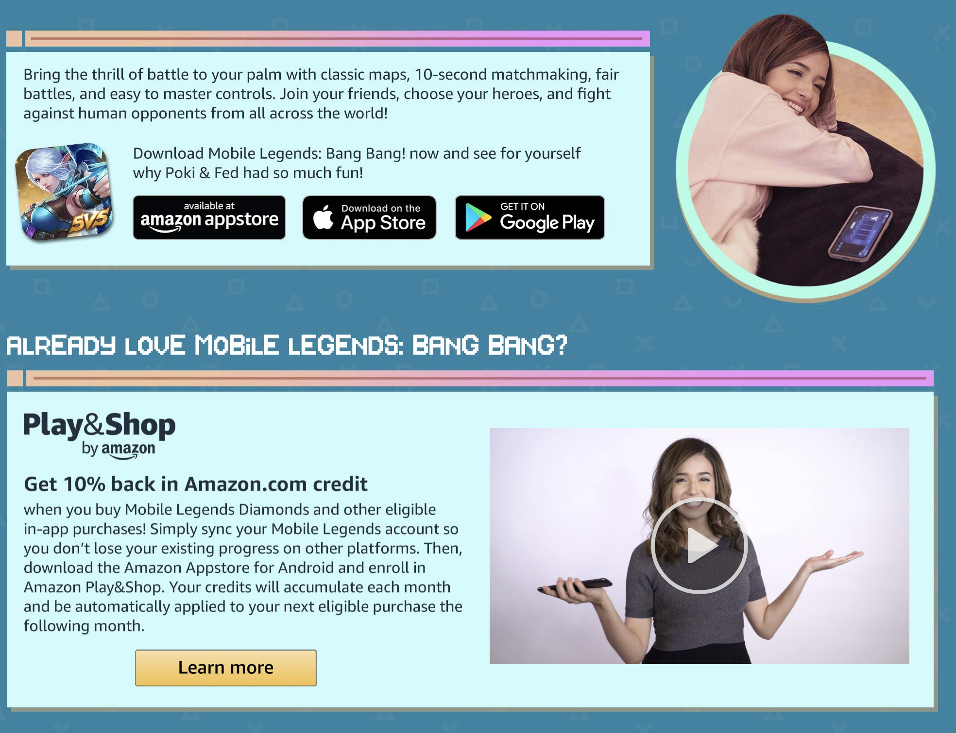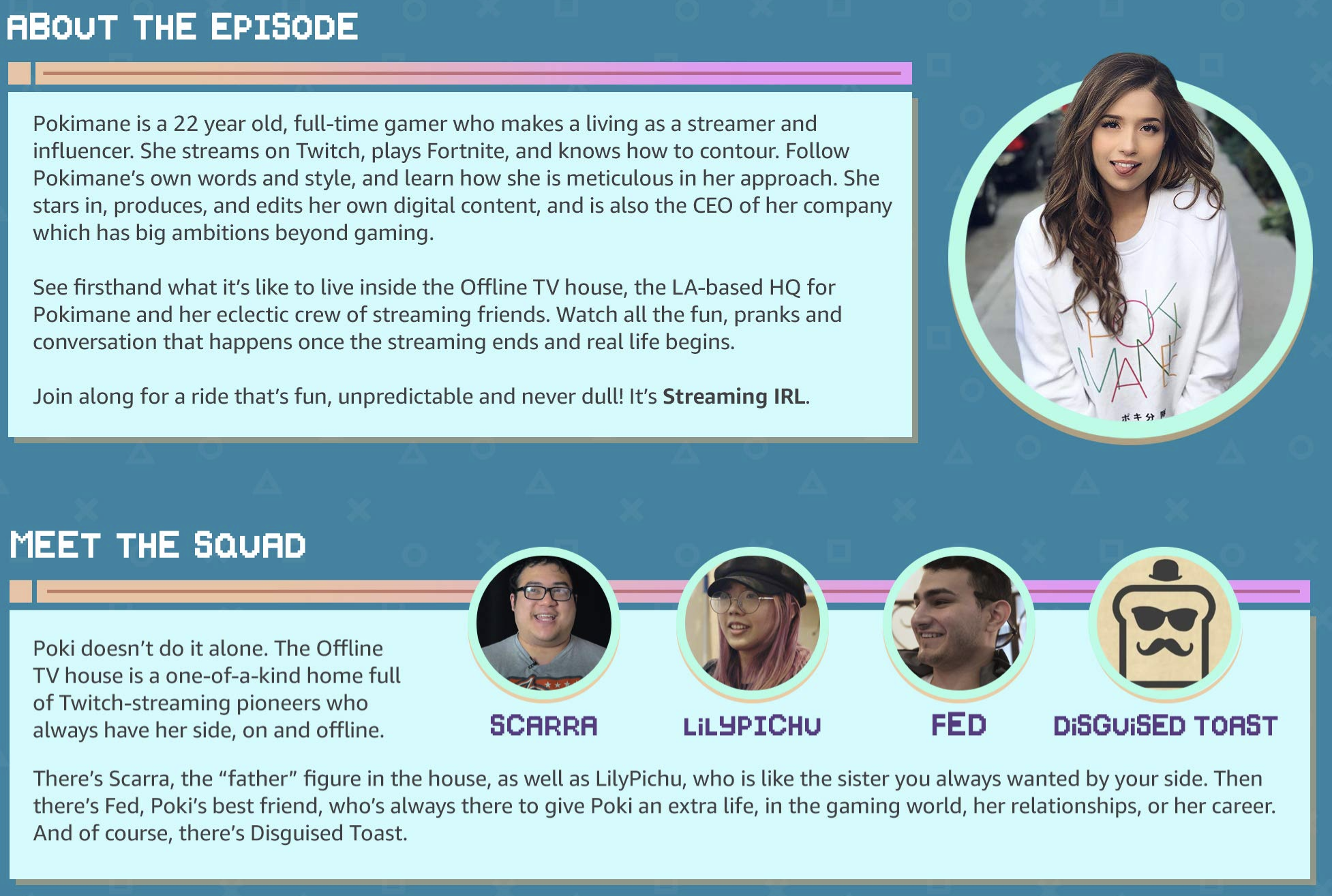 It was a huge honor to be approached by Amazon Play&Shop to work on a few landing pages for the premiere of their web series "Streaming IRL: Featuring Pokimane". I got to get in the mindset of an up-and-coming Twitch streamer and pen upbeat, playful copy while also engaging a non-gaming audience as well. Explore the full site and get a better look at copy here: